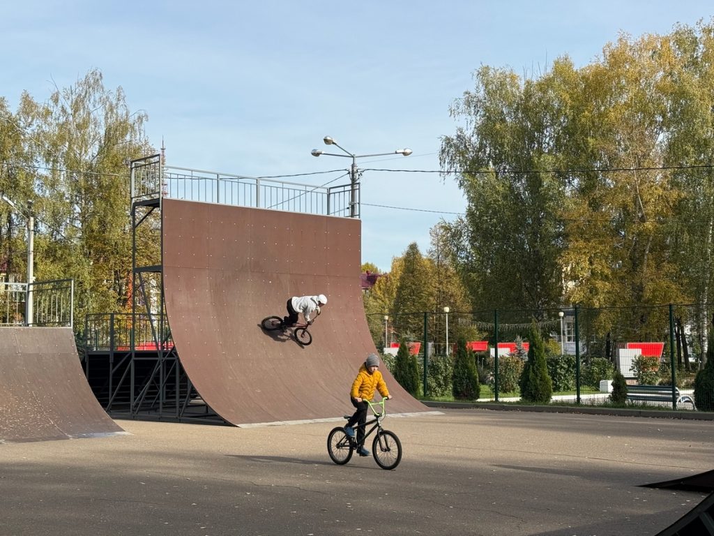 Рядом открыт скейт-парк – специализированная площадка для катания на скейтборде, BMX, самокатах и роликах. Этот объект в Парке Победы стал настоящим центром притяжения подростков.