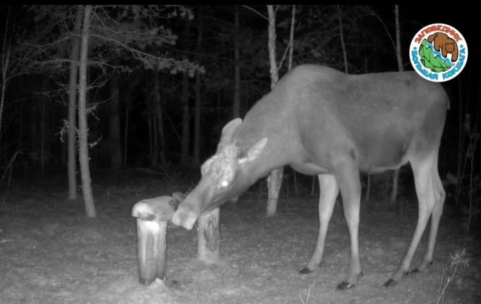 Так первым гостем солонца стал лось. Сохатый с явным удовольствием лакомился заботливо оставленной солью, сообщает пресс-служба заповедника.