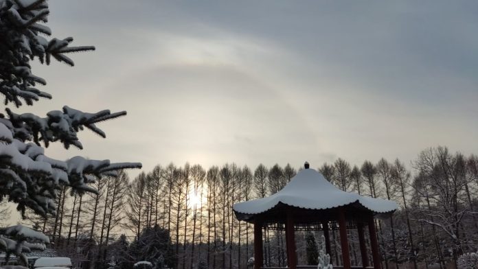 Специалистам Ботанического сада Йошкар-Олы удалось зафиксировать гало вокруг Солнца.