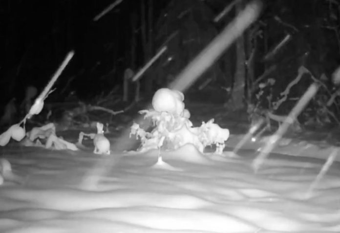 Животное сначала энергично прыгало вокруг кустов, а затем спряталось, высовывая лишь мордочку и торчащие из снега ушки. Такая вот необычная стратегия зимней выживаемости.