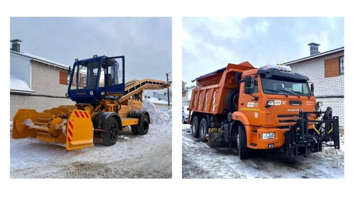 Одним из новых приобретений стала комбинированная дорожная машина на базе самосвала КАМАЗ-65115. Эта техника предназначена для комплексной уборки улиц и борьбы с последствиями снегопадов и гололёда.