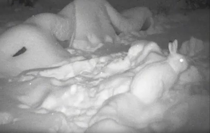 В На кадрах видно, как один из беляков забрался на огород и полакомился замерзшими розами. Обычно такие шалости приписывают зайцам-русаков, что делает случай особенно интересным для местных специалистов, следящих за дикой природой.