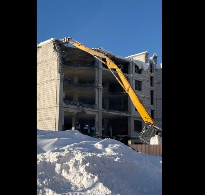 В Йошкар-Оле приступили к демонтажу долгостроя рядом с детской поликлиникой № 3 на набережной.