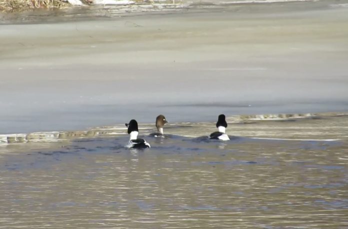 Весенний танец любви трех гоголей запечатлели на водоеме в Марий Эл