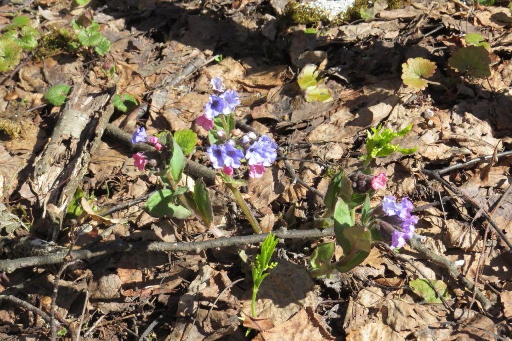 Следом за ними в фазу активного цветения вступила медуница. Рядом с ней на опушках раскинулись ковры хохлатки плотной, придавая местности мягкий сиреневый оттенок.