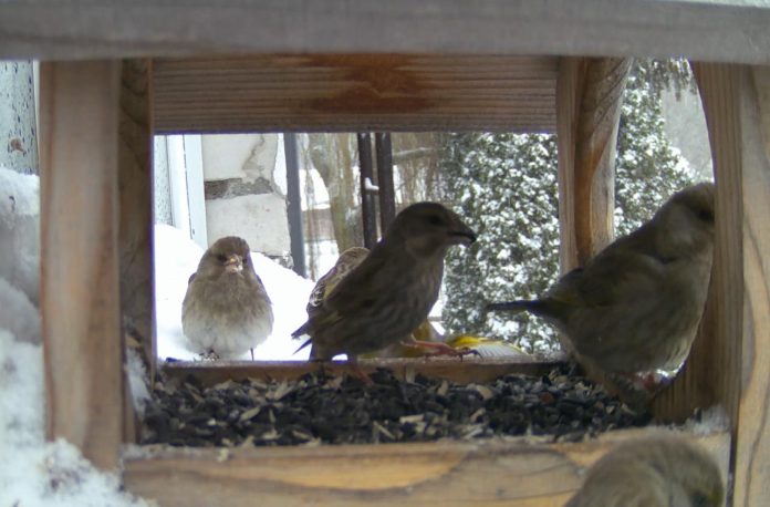 Резкое ухудшение погоды в Марий Эл привлекло к кормушкам Ботсада стайки зеленушек.