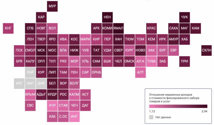 Оценка проводилась на основе соотношения медианных доходов жителей к стоимости фиксированного набора товаров и услуг, а также уровня бедности.