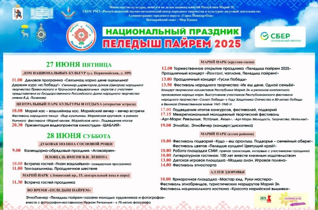 В этом году праздник посвящён Году защитника Отечества и 80-летию Победы. Основные мероприятия пройдут в Марий парке.