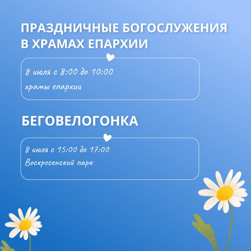 Кульминация праздника — 8 июля. В этот день пройдут выставки, мастер-классы, праздничный концерт, выступление музыкальной группы «Время пришло» и танцевальный марафон.