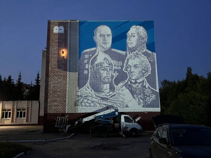 Автор работы — уличный художник Илья Белов — изобразил на фасаде школы сразу четырёх выдающихся полководцев: Александра Невского, Александра Суворова, Михаила Кутузова и Георгия Жукова.
