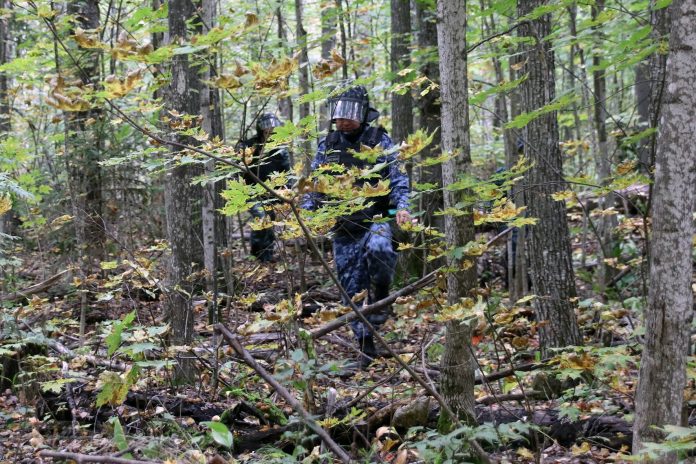 В ходе поисков произошел условный боевой контакт, при котором один из сотрудников «получил ранение». Коллеги организовали огневое прикрытие и эвакуацию пострадавшего с последующим оказанием медицинской помощи.