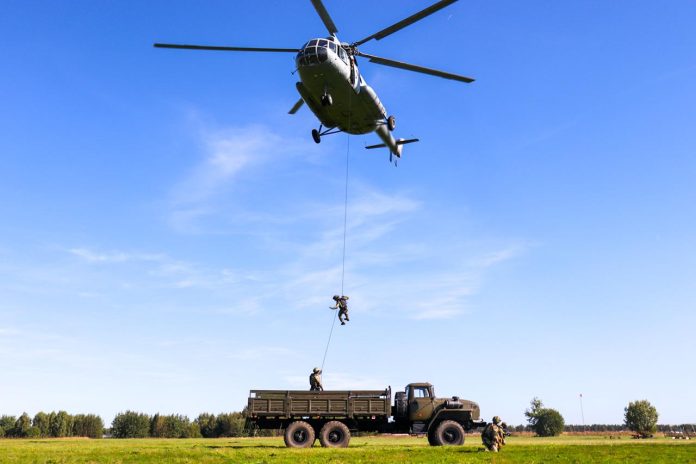 В Марий Эл бойцы спецподразделений ОМОН «Таир» и СОБР «Берсерк» отработали элементы беспарашютного десантирования с вертолёта Ми-8.