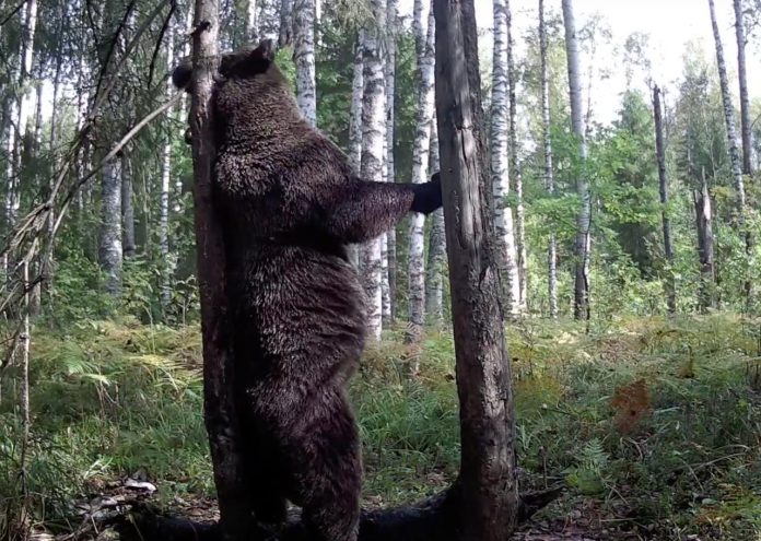 В заповеднике фотоловушки постоянно фиксируют, как медведи трутся о деревья. Движения животных по форме напоминают неуклюжий танец вокруг шеста, и каждая особь оставляет свои метки на древесной коре.