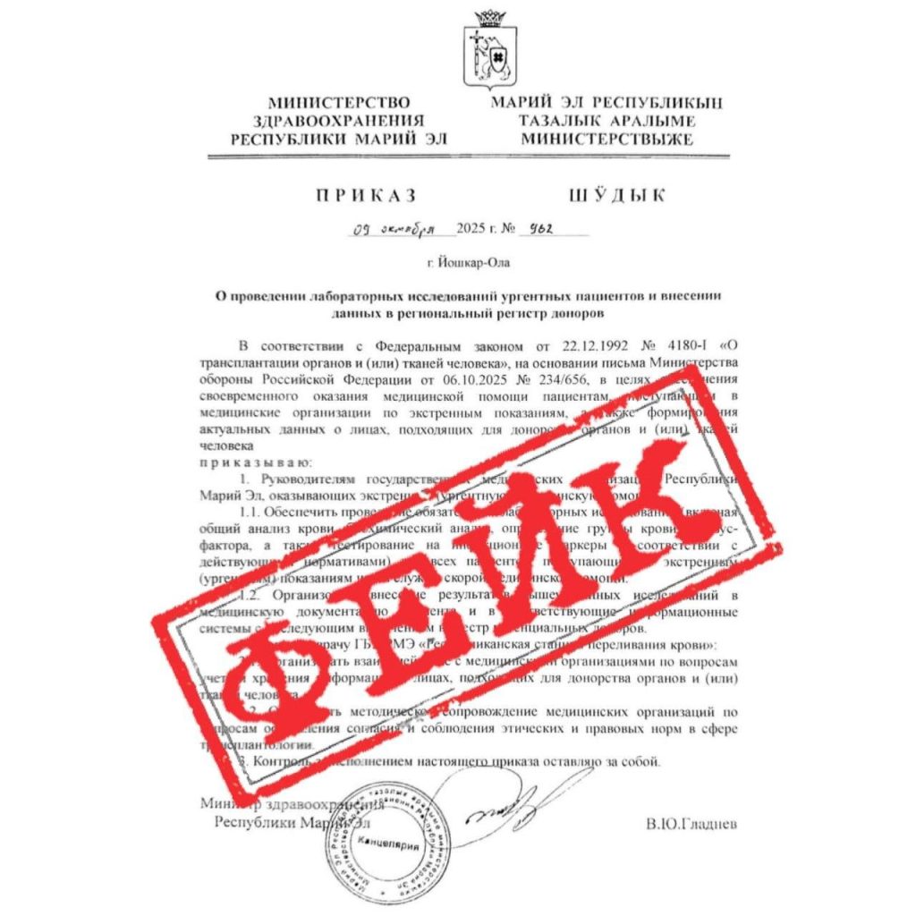 Специалисты подтвердили, что данный документ — фейк. Он не имеет юридической силы и не отражает действующих приказов или распоряжений министерства.